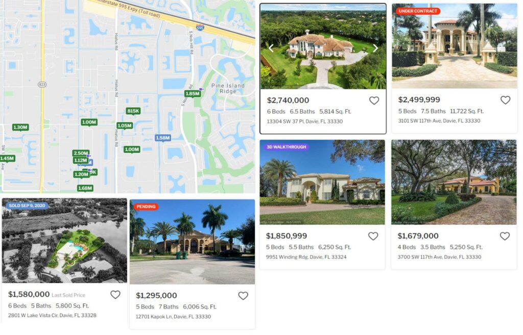 Here are some examples of current 1 Acre zoning homes for sales in Davie.
